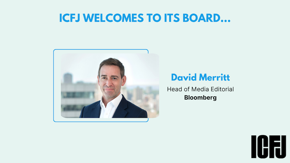 The International Center for Journalists (ICFJ) this week announced that David Merritt, the head of media editorial at Bloomberg, has joined its Board of Directors.
